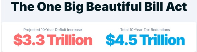 The OBBBA codifies the Trump 2.0 domestic agenda, emphasizing lower taxes, deregulation, and protective tariffs to stimulate domestic investment, reduce social safety nets, and strengthen national security and immigration enforcement. It extends the 2017 Tax Cuts and Jobs Act, eliminates taxes on tips and overtime, and funds border security and deportation. The OBBBA seeks to reduce federal government size, dismantle the “administrative state,” and use executive/legislative authority to implement tax cuts, restructure entitlement programs (like Medicaid), and reverse prior climate/energy policies. It also targets the Affordable Care Act and Inflation Reduction Act. This “all-or-nothing” legislative bundling minimized dissent but is, in my opinion, no way to produce legislation.