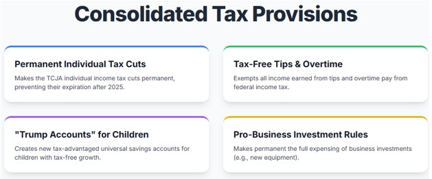 - Cuts Made Permanent: The OBBBA makes permanent the TCJA individual income tax cuts, originally expiring after 2025. This means lower marginal tax rates, providing tax certainty and stimulating the economy.