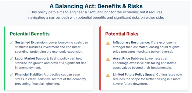 This simultaneous rate cut (easing) and continuation of QT (tightening) indicate a somewhat dichotomous overall policy stance. The rate cut is a targeted, tactical adjustment aimed at managing specific near-term risk, namely, the deteriorating labor market outlook—while the commitment to ongoing balance sheet normalization signals a concern for inflationary pressures.