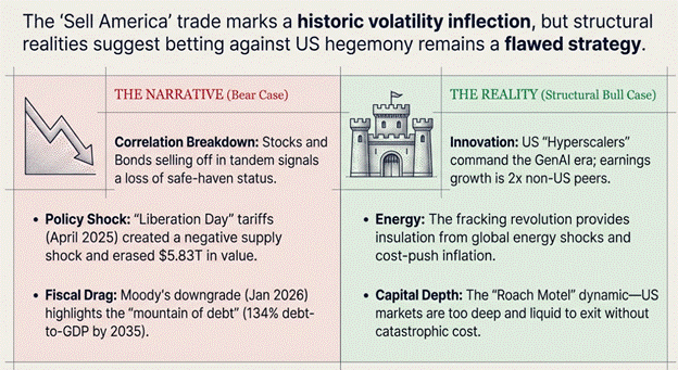 Despite the noise, the U.S. retains deep structural advantages often called “American Exceptionalism” that make betting against it a fundamentally flawed strategy.